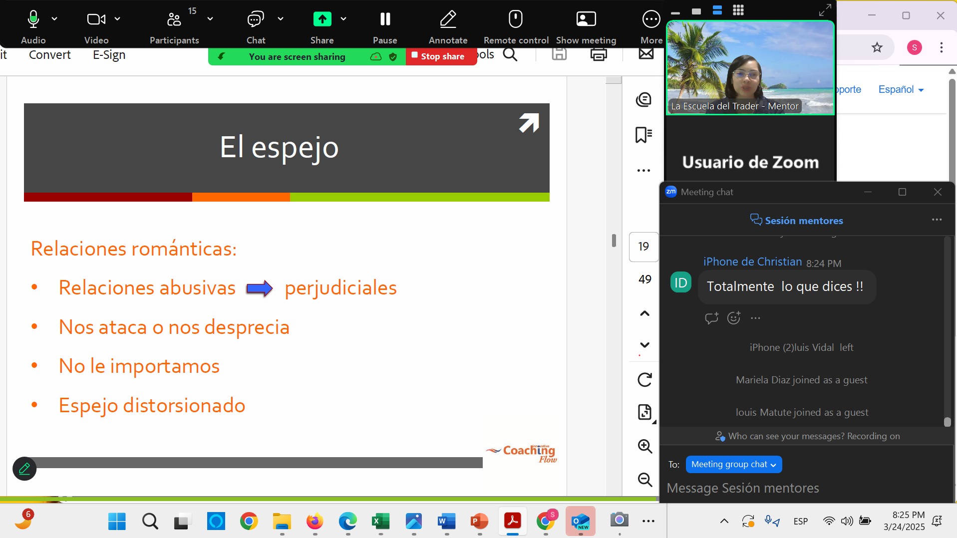 Anayanci is an organizational psychologist, coach and trainer, with nine years of experience as a professional and seven years as a coach. She loves her job and seeks to inspire her coaches, students and clients with her energy and dynamism.She has worked as a university professor in areas such as leadership, organizational behavior, human management and managerial skills. She has lectured on nonviolence, communication, how to change bad habits, and other soft skills.She has been part of the Peace Revolution community since 2012, attending six meditation retreats as a participant or mentor, since she thinks that one should always be in search of inner peace. She believes human beings can achieve everything they set out to do, so she seeks to help other people to transform their lives. She believes that 'Everything is possible, dare to fulfill your dreams!'.